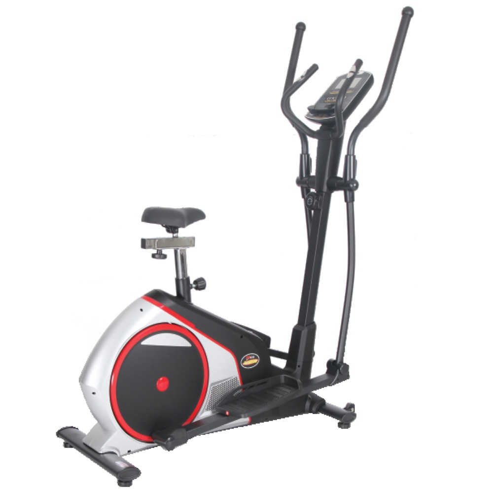 PREMIUM MAGNETIC ELLIPTICAL BIKE WITH SEAT. REAR DRIVEN ELLIPTICAL BIKE WITH 8 LEVEL MANUAL TENSION CONTROL SYSTEM. COMPUTER LCD DISPLAY TIME, SPEED, DISTANCE, CALORIE, PULSE WITH IPAD / SMART PHONE HOLDER. HANDLE BAR DESIGN OFFERS SUPERB ERGONOMICS WHICH ENABLES NATURAL & EFFECTIVE TRAINING. 40.64 CM. (16”) LONG STRIDE & 10 KG. OF ROTATING MASS ENSURE SMOOTH AND DYNAMIC ELLIPTICAL MOVEMENT. TOP QUALITY COMPONENTS ENSURE PERFECT TRAINING ERGONOMICS. ULTIMATE CROSS TRAINER FRAME FOR THE MOST DEMANDING USER.